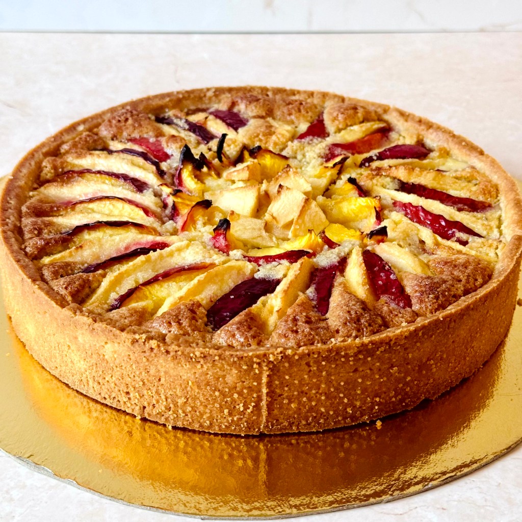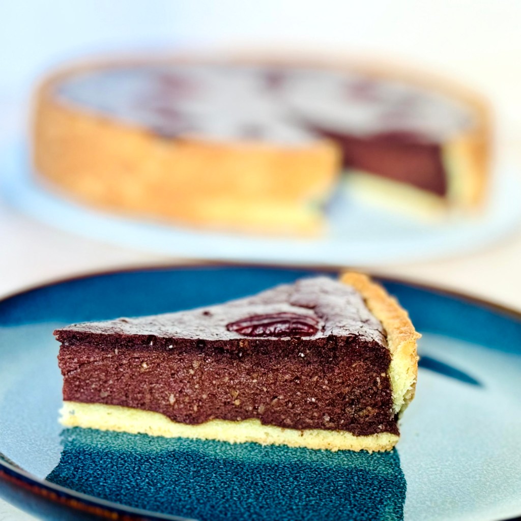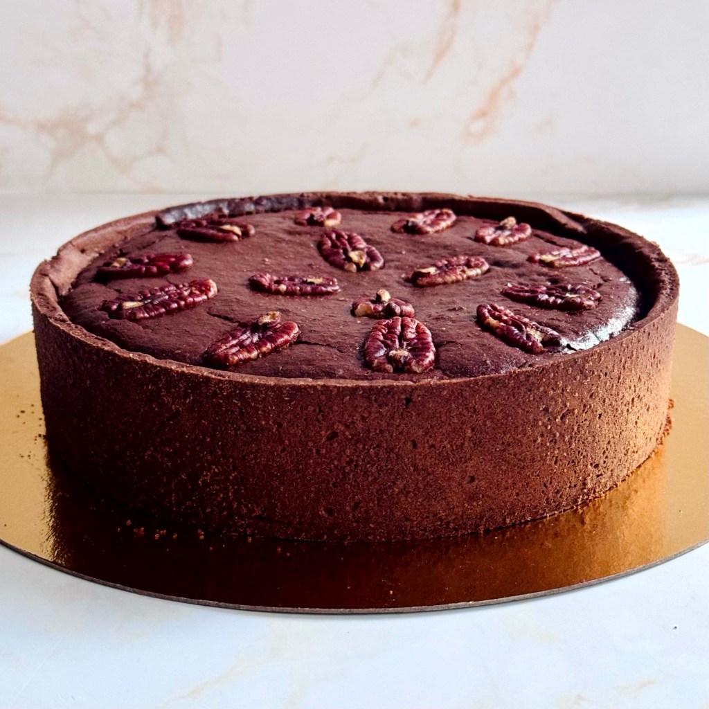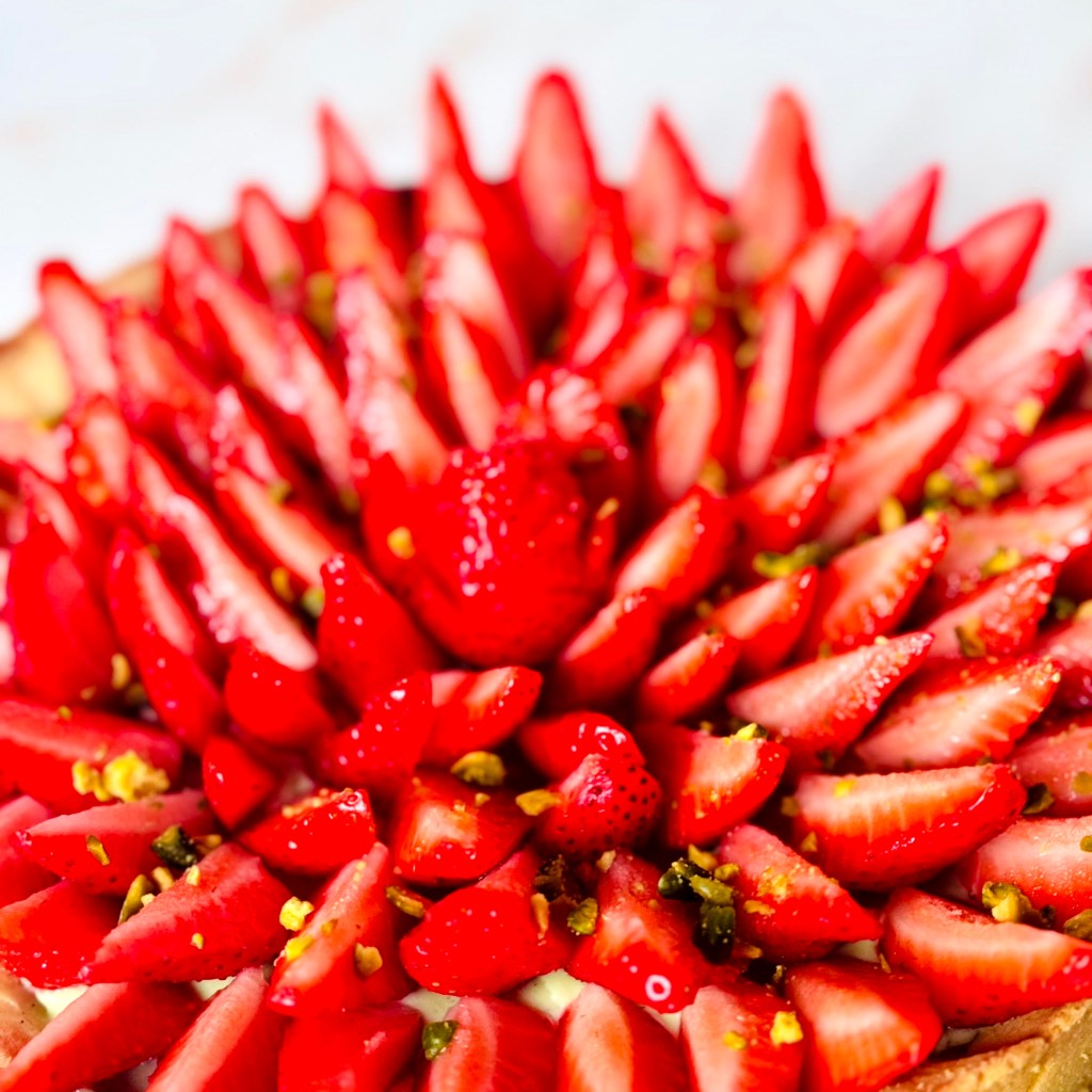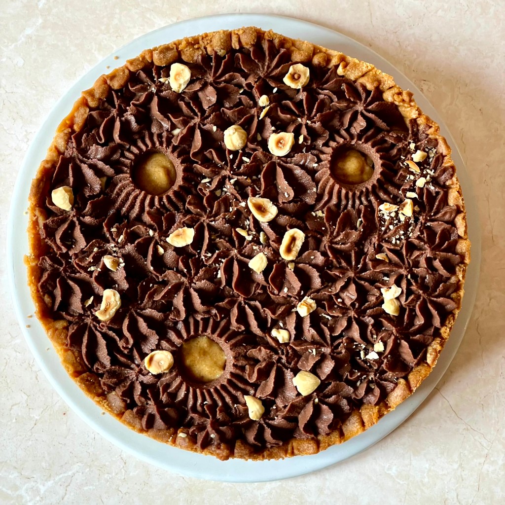 Tarif : 50€ — Une tarte réalisée sur deux jours, avec un vrai travail des températures et une décoration soignée, pensée comme un petit travail d’orfèvre