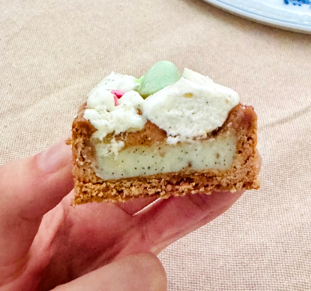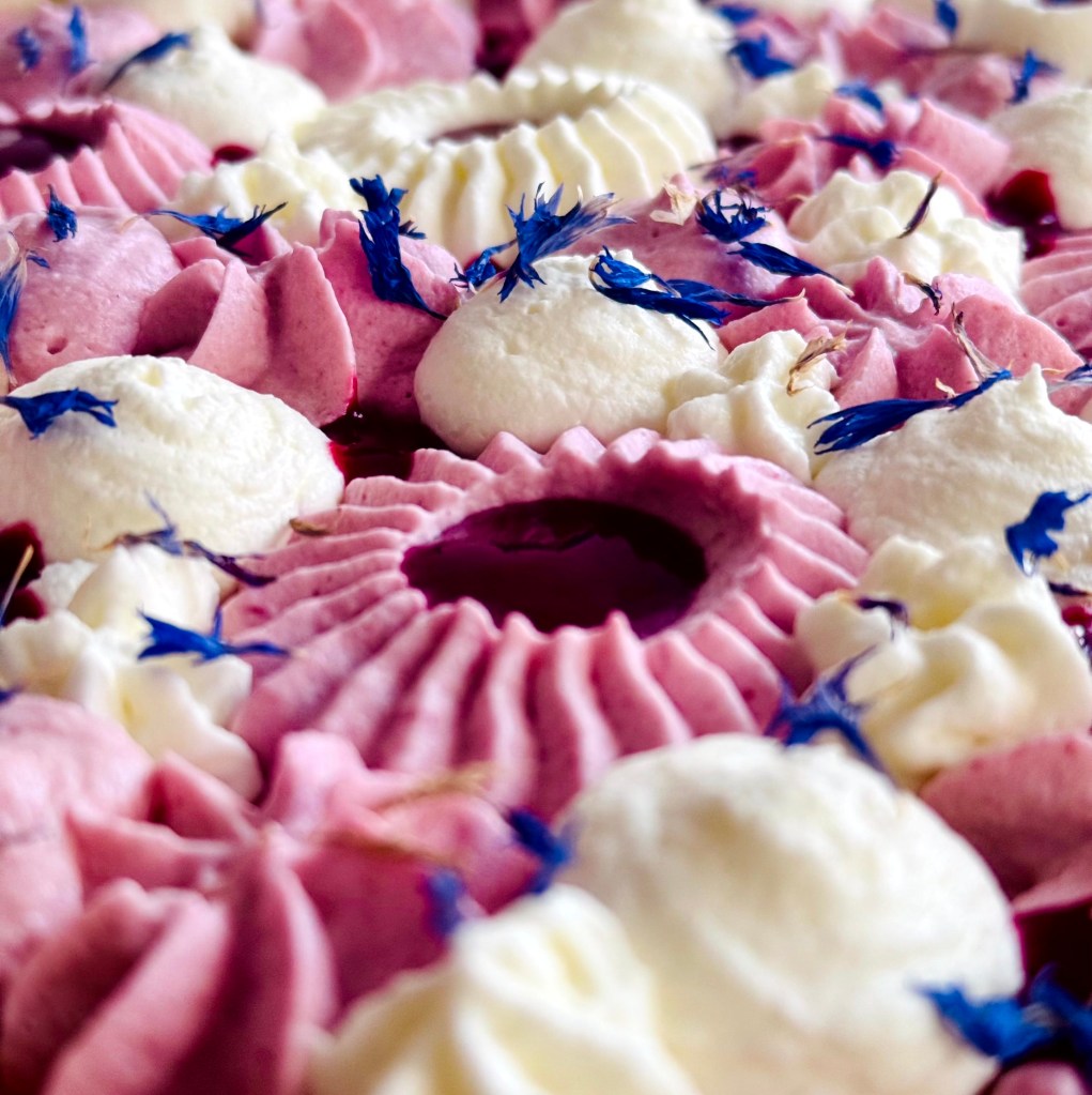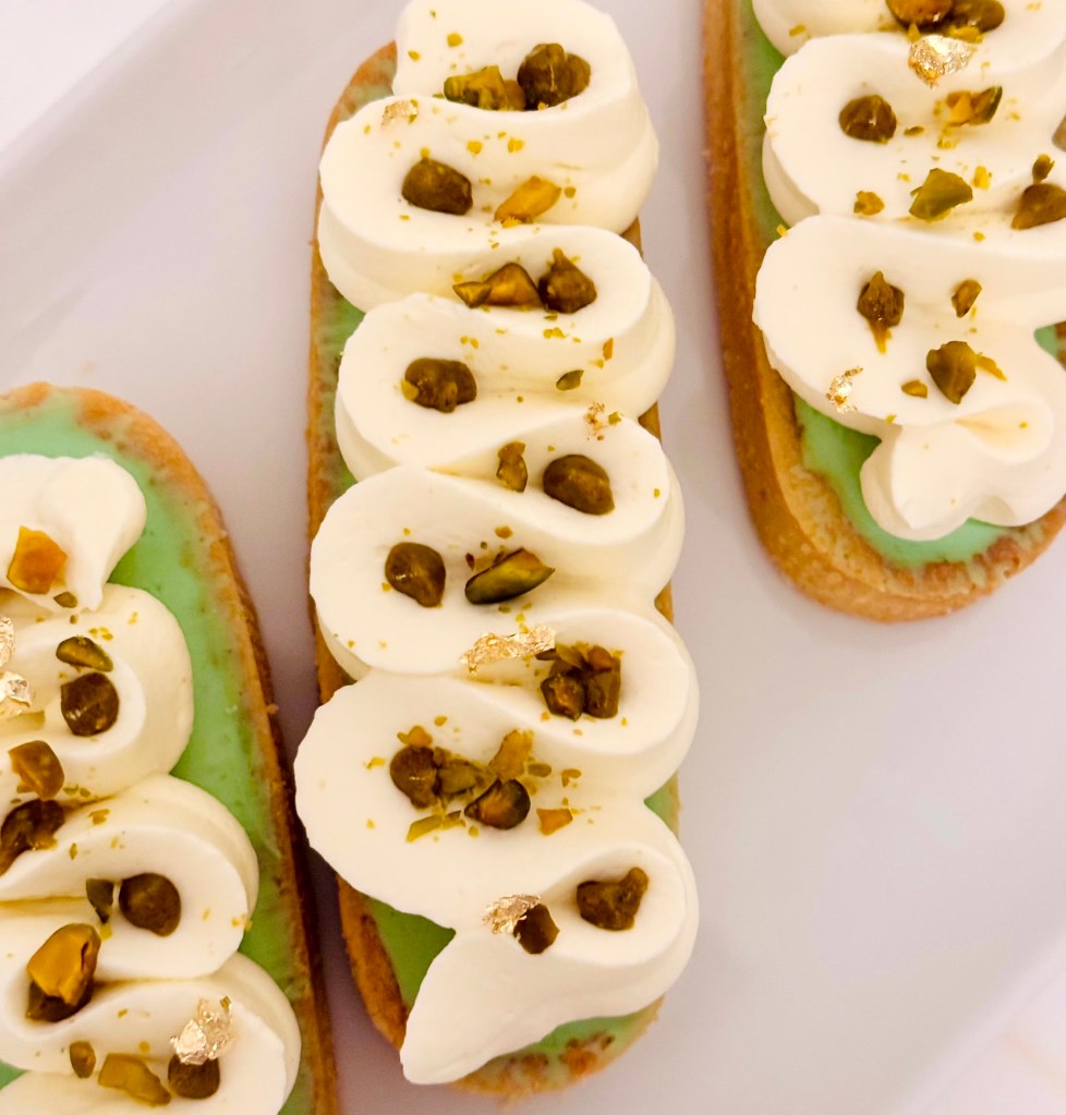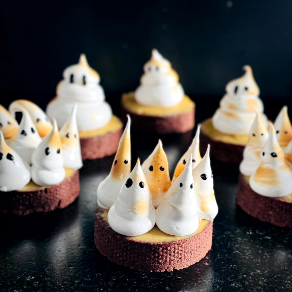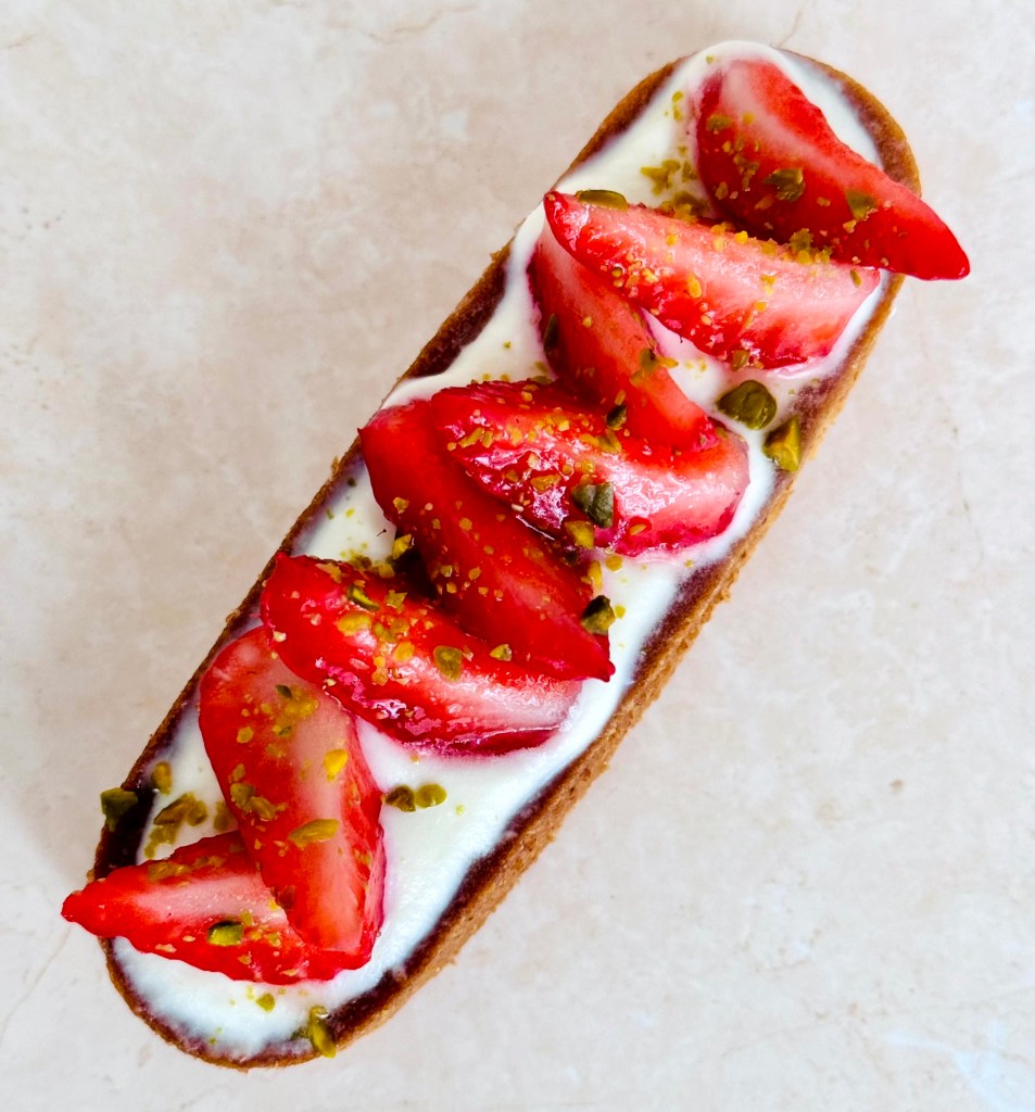 Tarif : 50€ — Une tarte réalisée sur deux jours, avec des préparations travaillées en deux temps, une meringue pochée avec soin. Un équilibre fin entre technique, précision… et peps.