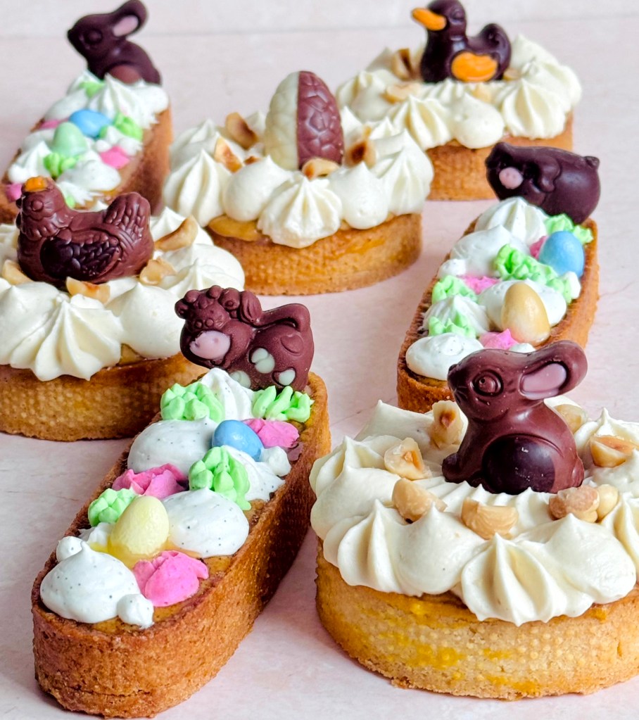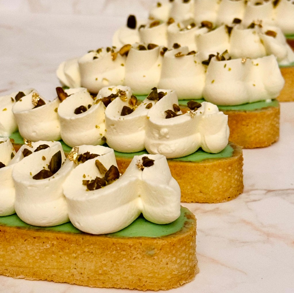 Chaque tarte repose sur une pâte sucrée bien croquante, garnie d’une crème ou d’une ganache fondante, rehaussée de crèmes fouettées légères et parfumées ou de curd intense, et décorée avec soin — pour le plaisir des yeux autant que celui des papilles.